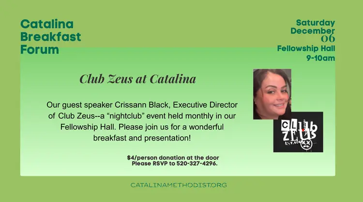 All are welcome at this popular event. Please RSVP to 520-327-4296 so we know how much food to prepare! A $4/person donation is appreciated at the door!